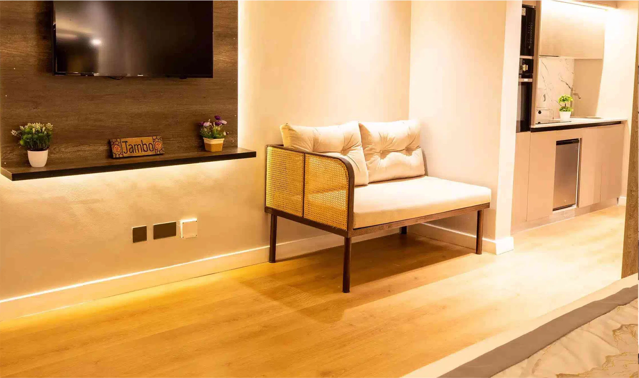 Step into the epitome of elegance with the Studio Suite at Lion Villas, Muthaiga Heights. Bask in the refined ambiance created by soaring gypsum ceilings, tiled floors, and vibrant indigenous-inspired decor.