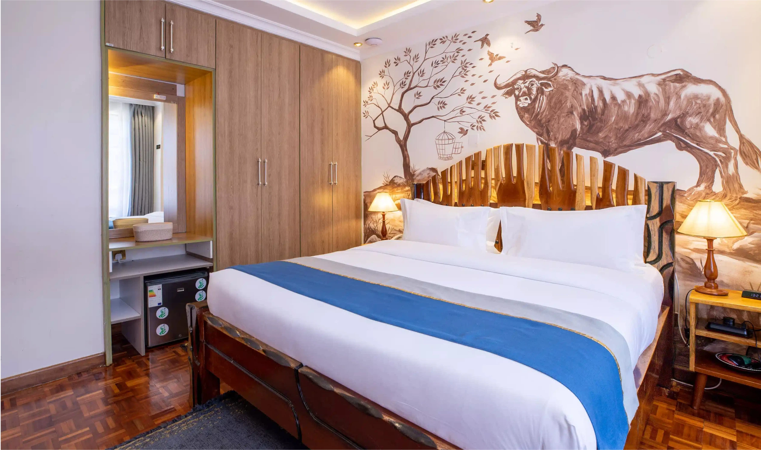Our Superior Room is a tribute to Africa's rich heritage, blending authentic decor with modern sophistication. Every detail, from the warmth of wooden tiles to the carefully curated decor, speaks of Africa's timeless beauty—offering you more than just a stay, but an experience.