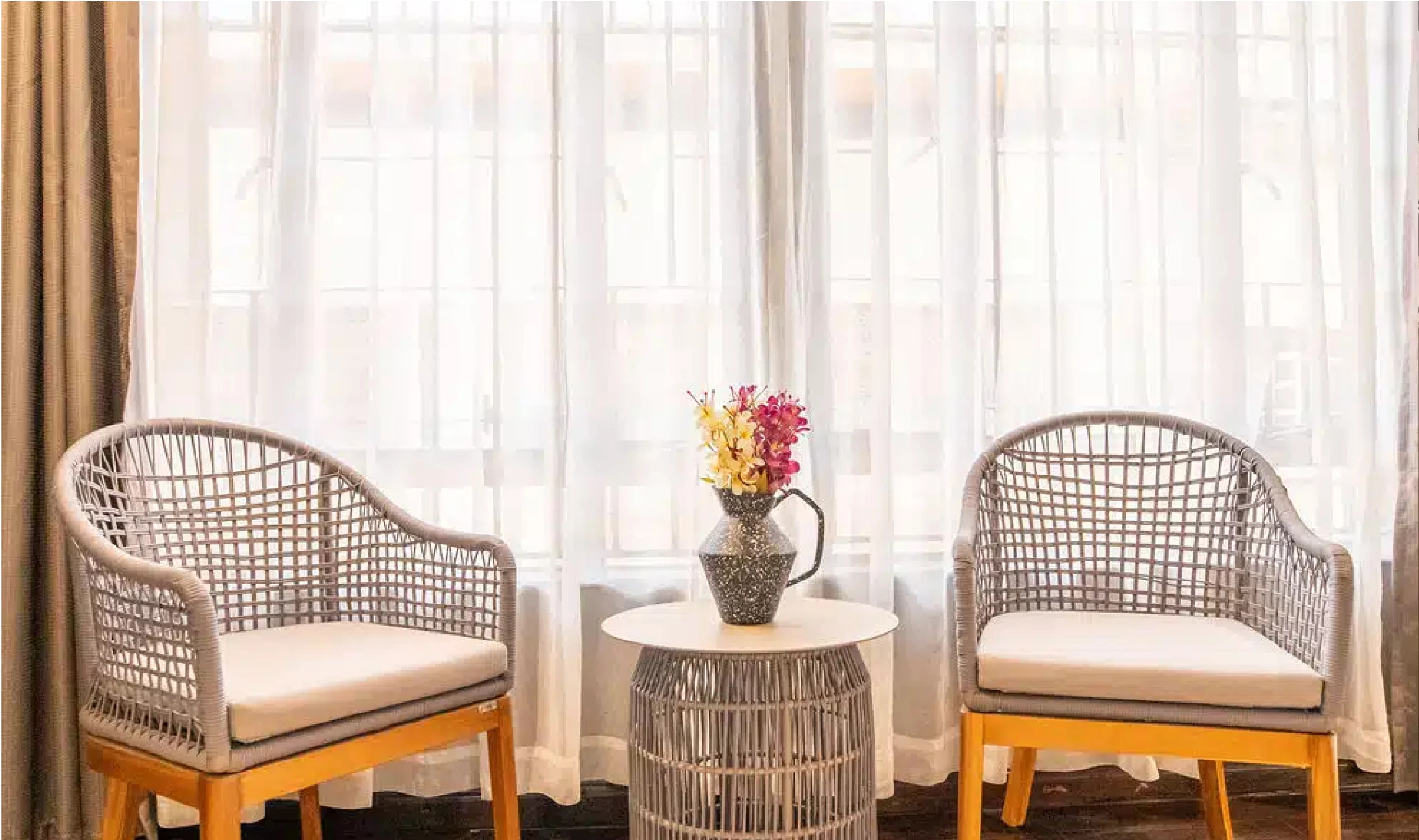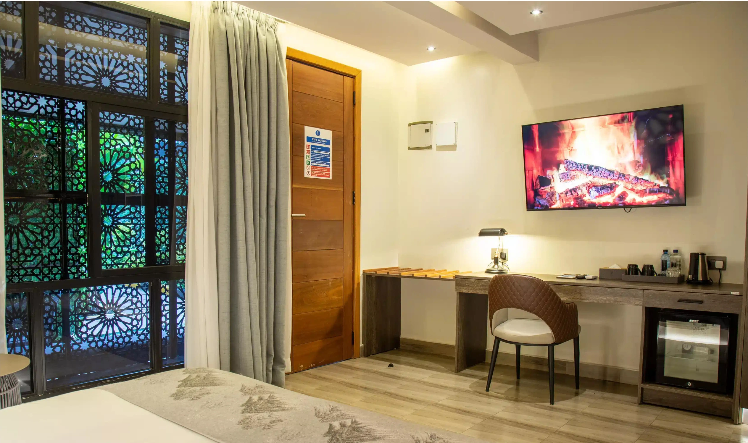 Inspired by Moroccan decor, this elegantly designed Deluxe Room features a beautifully crafted interior, a modern bathroom, and abundant natural light, creating a warm and inviting atmosphere.