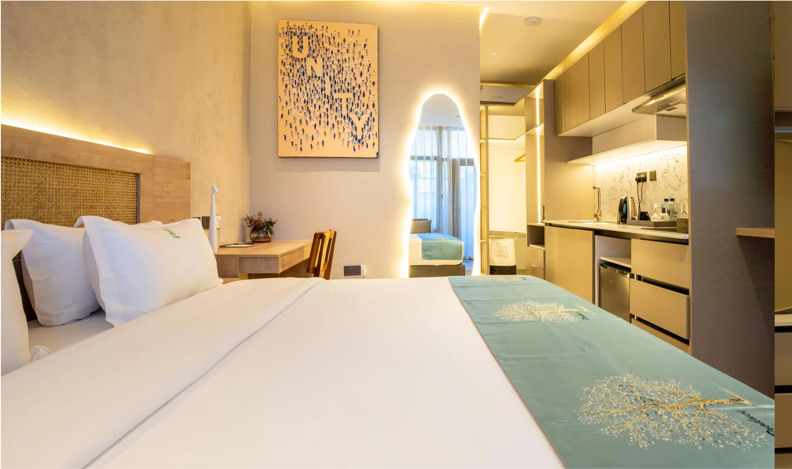 With its contemporary-themed open-plan spaces and luxurious rooms, the Garden Villa seamlessly marries the tranquil beauty of nature with modern luxury.