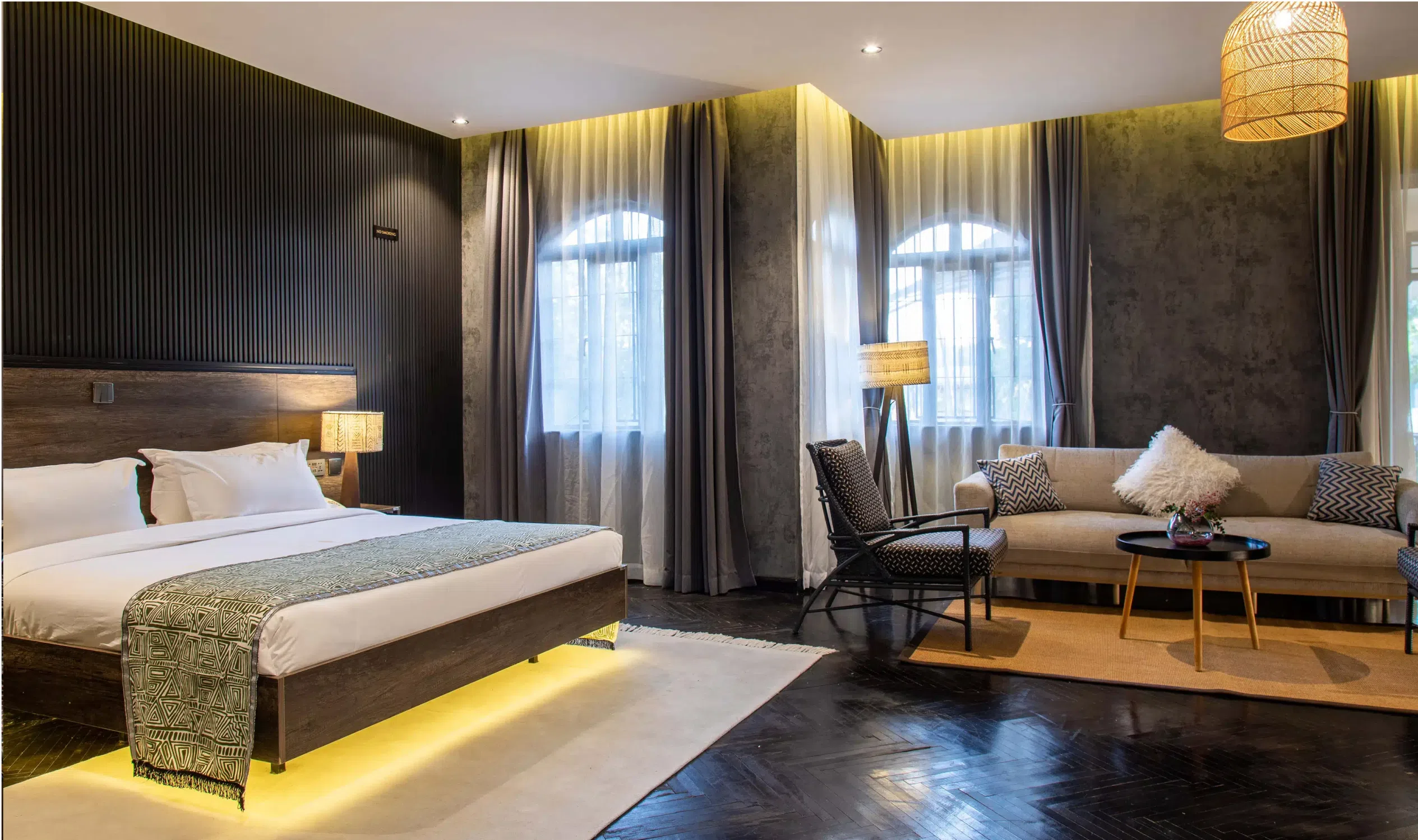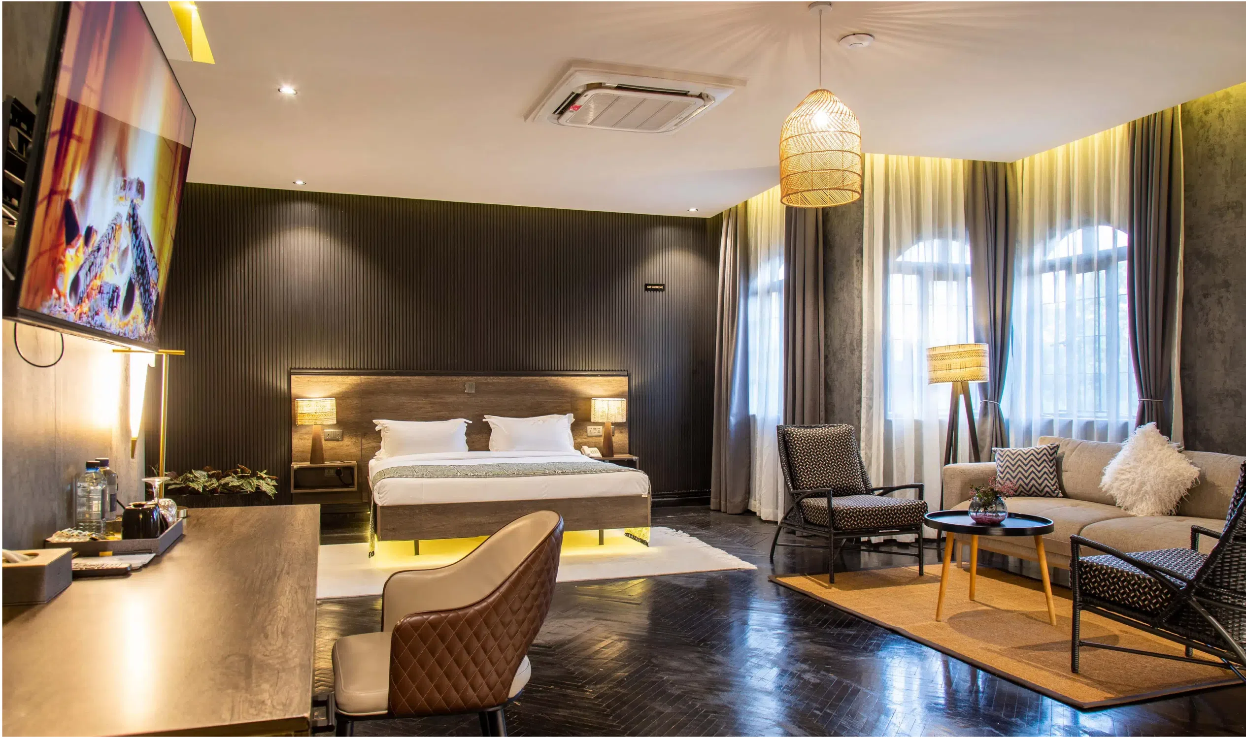 Step into Our Main Villa, a place where elegance and comfort come together effortlessly. With modern, dark-toned interiors and tranquil, inviting corridors, every space is designed to make you feel at ease. Whether you choose a Presidential, Junior, Executive, or Deluxe Room, you'll find a warm, stylish escape that feels just like home—only more indulgent.