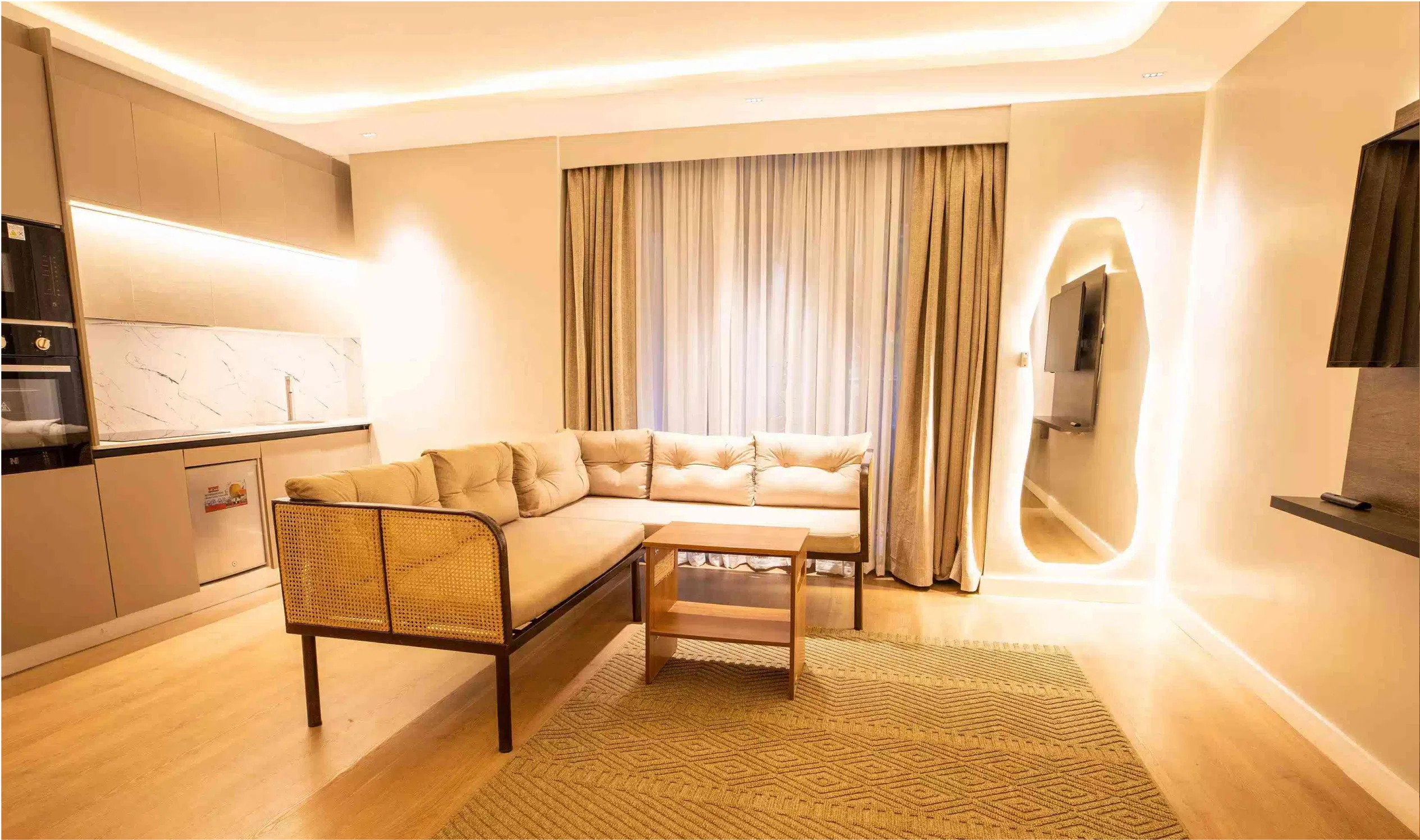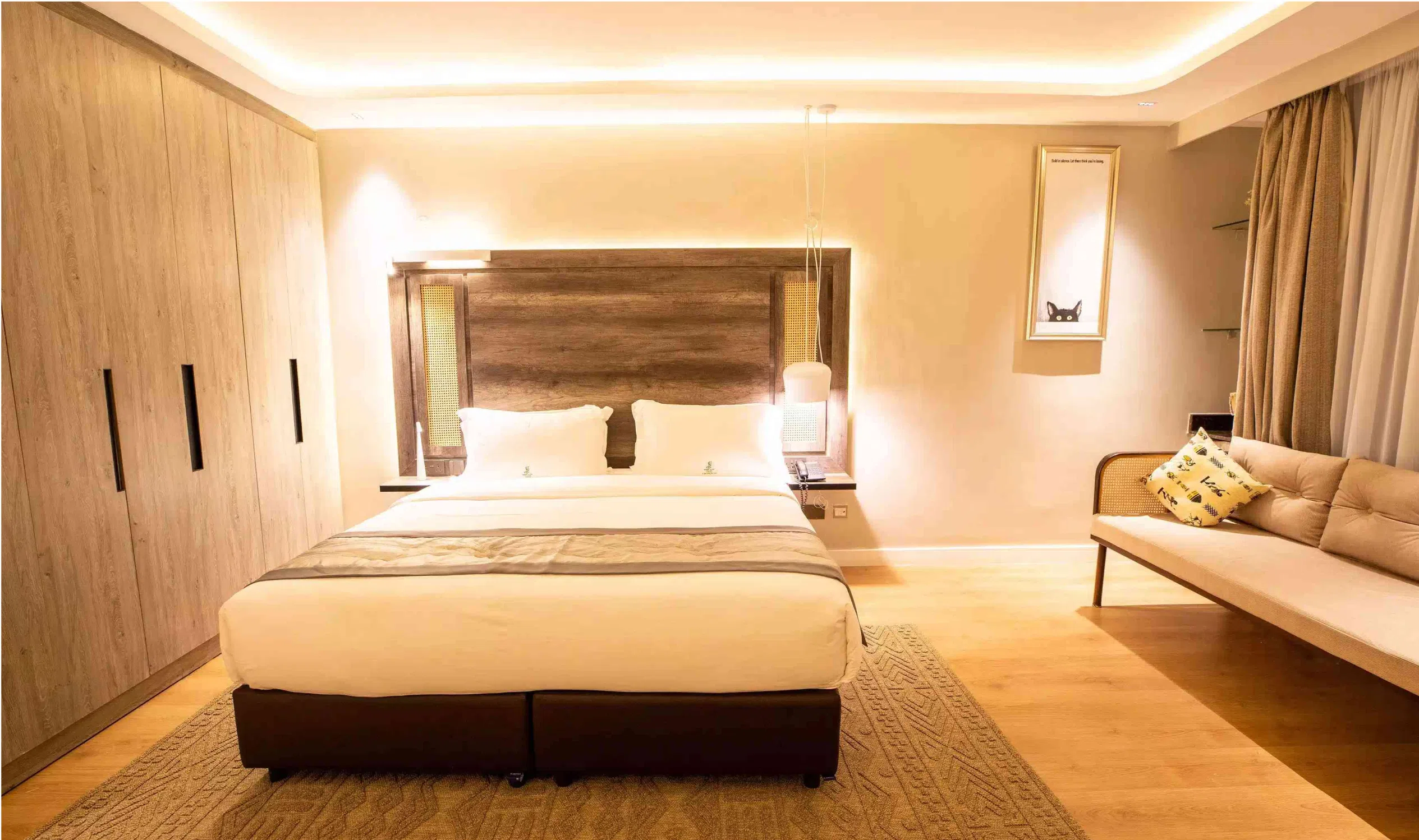 Discover the pinnacle of luxury in the Family Studio Suite,This exclusive suite blends African elegance with modern sophistication, featuring soaring gypsum ceilings, tiled floors, and rich, indigenous-inspired decor.